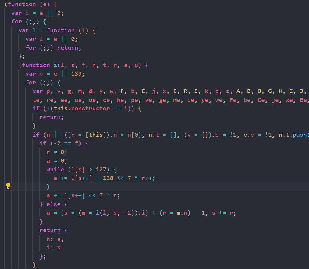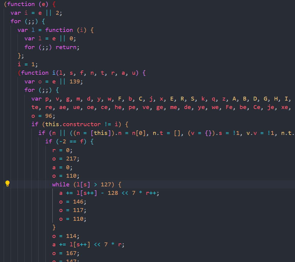 function controlFlowStructure(si, map, cases, stack = [], body = []) { if (!map.loop) map.loop = []; if (stack.includes(si)) { if (map.loop.indexOf(si) === -1) map.loop.push(si); return body; } let item = map[si]; body = body.concat(cases[si].consequent); switch (item.length) { case 0: return body; case 1: return controlFlowStructure(item[0], map, cases, stack, body); case 2: stack.push(si); body[body.length - 1].consequent = types.blockStatement( controlFlowStructure(item[0], map, cases, stack, []) ); if (map.loop.includes(si)) { let { test, consequent } = body[body.length - 1]; body[body.length - 1] = types.whileStatement(test, consequent); body = body.concat( controlFlowStructure(item[1], map, cases, stack, []) ); } else { body[body.length - 1].alternate = types.blockStatement( controlFlowStructure(item[1], map, cases, stack, []) ); body = body.concat( removeDuplicates( body[body.length - 1].consequent.body, body[body.length - 1].alternate.body ) ); } stack.pop(); return body; } }